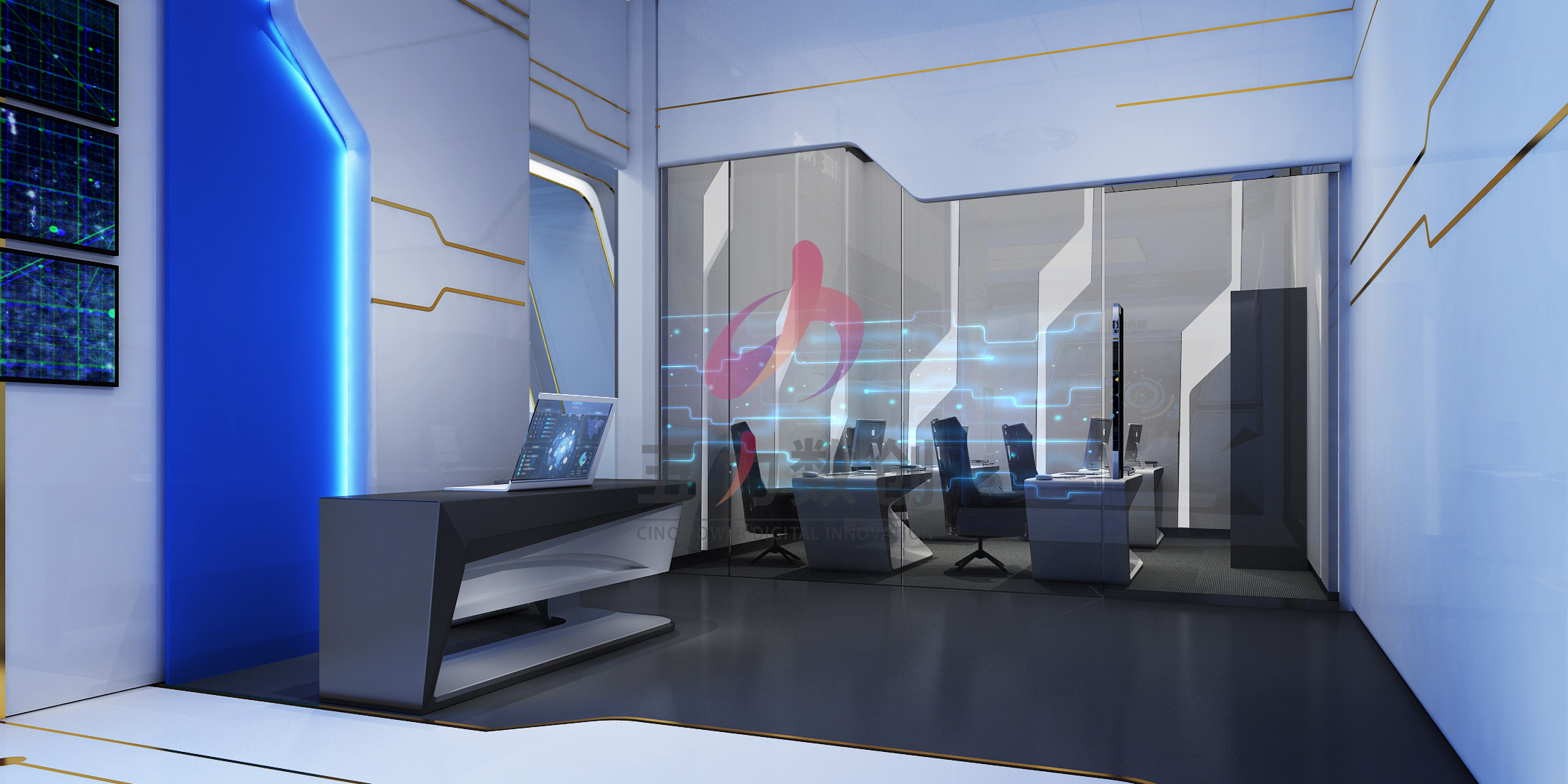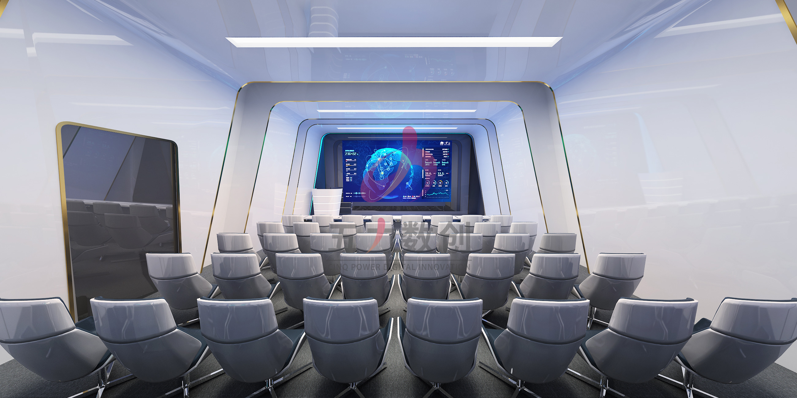 五力數創憑借優秀的整體設計能力,始終圍繞“智能服務,智造未來”的主題概念為銀企方舟智能服務展示中心設計了科技感強烈的智能展示中心,同時以大數據應用和智能化服務為基礎,用高端、現代、新穎的數字多媒體手段為展示中心賦予了更多的生命力。全方位展示智能化服務平臺的高效和便捷。