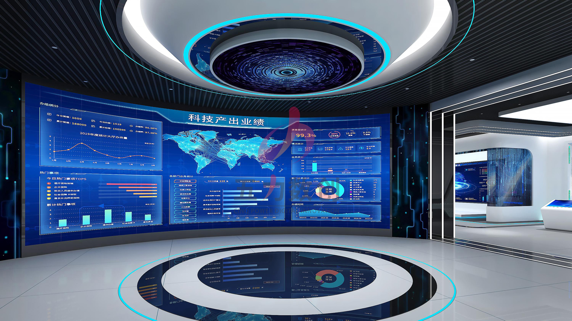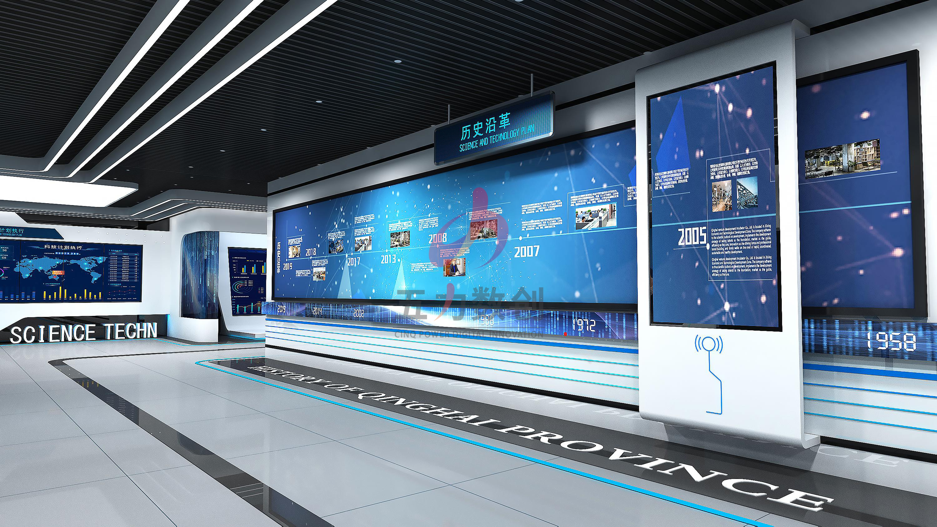 項目介紹:五力數創精準定位,運用人機交互、大數據可視化等數字展示手段展示青海省各科技企業實時數據及科技成果,成功實現科技活動動態監測,為城市相關產業的數字化升級提供了有效支撐,完美打造一個科技現代風,兼具展示體驗和服務功能的青海科技創新展示中心,實現了全局性、智慧性、示范性、可視化和互動性。